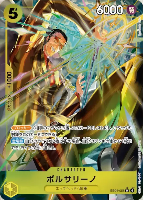 ボルサリーノ SR-P【EGGHEAD CRISIS】とは、2026年1月31日(土)に発売された「EGGHEAD CRISIS」に収録されたワンピースカードです。