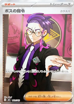 ボスの指令(カラスバ)【スタートデッキ100 バトルコレクション】とは、2025年12月19日(金)に発売された「スタートデッキ100 バトルコレクション」に収録されたポケモンカードです。