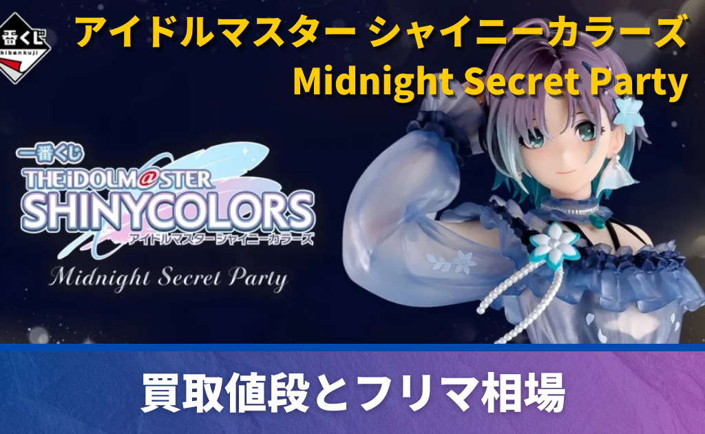 2025年12月23日(火)に発売される一番くじ「アイドルマスター シャイニーカラーズ Midnight Secret Party」について、買取価格やメルカリでの相場情報をご紹介します。 今回のシリーズは、アイドルたちの“ひみつの夜会”をテーマにした、落ち着いた世界観... -