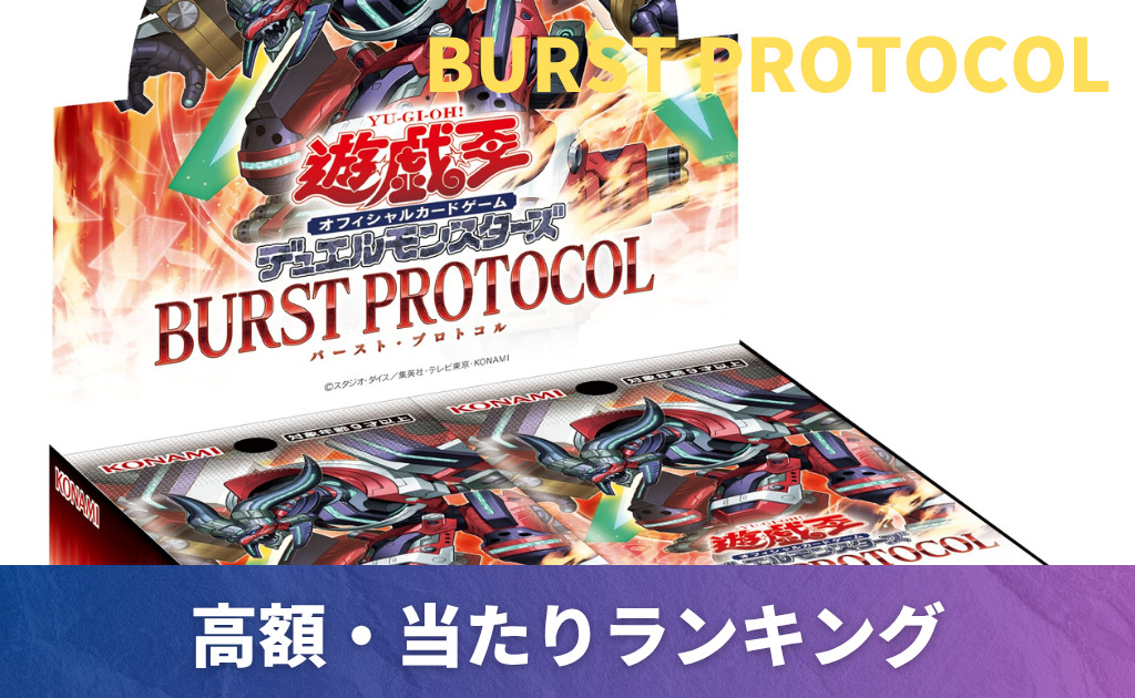【遊戯王】 「BURST PROTOCOL」当たりカード買取価格一覧!フリマ相場、販売/買取価格、収録カードも紹介!【基本パック】遊戯王の高額買取目安表 ※表に掲載中の買取価格は買取価格の目安表であり、買取価格を保証するものではございません。査定時の在庫状況や状態等により変動する可能性がございます。予めご了承ください。 2025年10月25日(土)発売の遊戯王新弾「BURST PROTOC...
