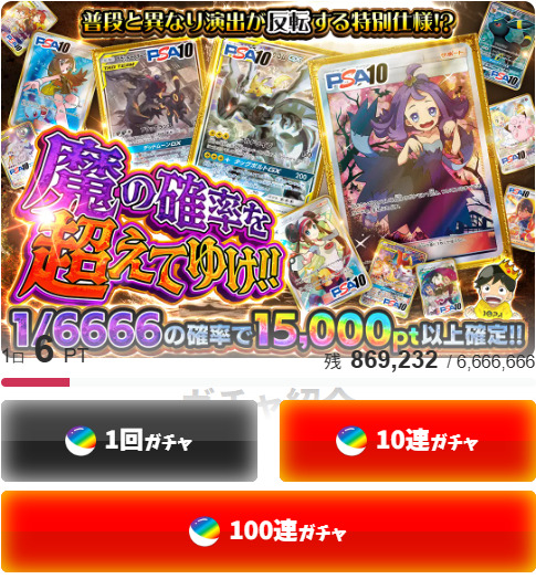 基本的に購入に使ったポイントよりも高いポイントのカードが排出されるようにできているので、新規会員登録後はまずそれらのオリパを引いてみることをおすすめします!