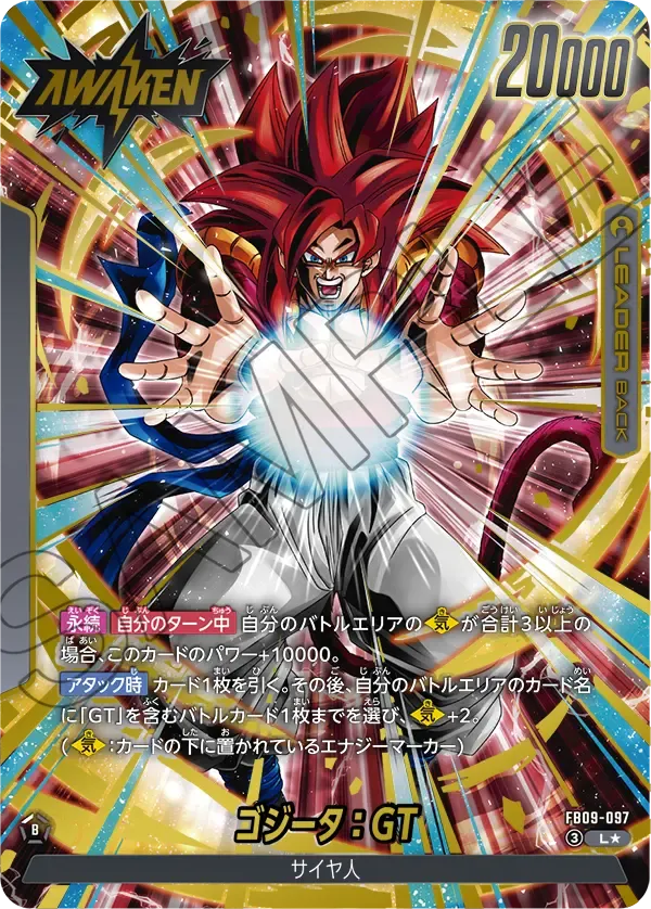 このカードはは、『ドラゴンボールGT』に登場するゴジータをモチーフにしたリーダーカードのパラレル仕様です。孫悟空とベジータがフュージョンによって誕生する戦士であり、特に超サイヤ人4の姿はシリーズの中でも印象的なビジュアルとして多くのファンに知られています。本カードはパラレル特有のイラストや加工が施された特別仕様となっており、通常版とは異なる魅力を持つデザインが特徴です。リーダーカードとしてデッキの中心となる存在であり、プレイヤーからの需要も高いカードとなっています。キャラクター人気とコレクション性の高さから、ドラゴンボールカードの中でも注目されることの多い1枚です!