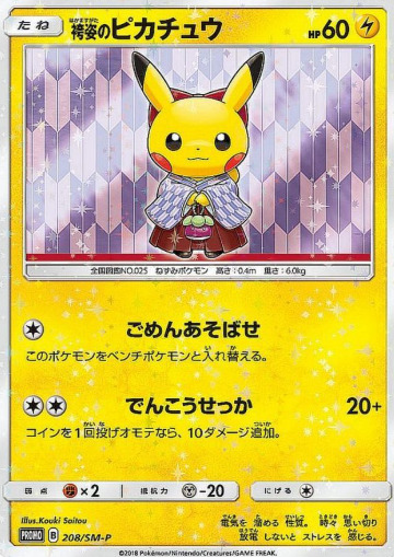 - 袴姿のピカチュウは、2018年3月14日に発売された「スペシャルBOX ポケモンセンタートウキョーDX」に収録されたポケモンカード