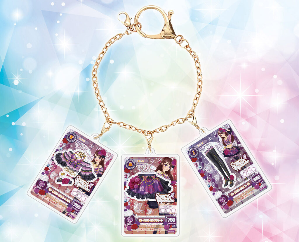 B賞は、3枚のアイカツ!カードチャームが連なった華やかなバッグチャームです。