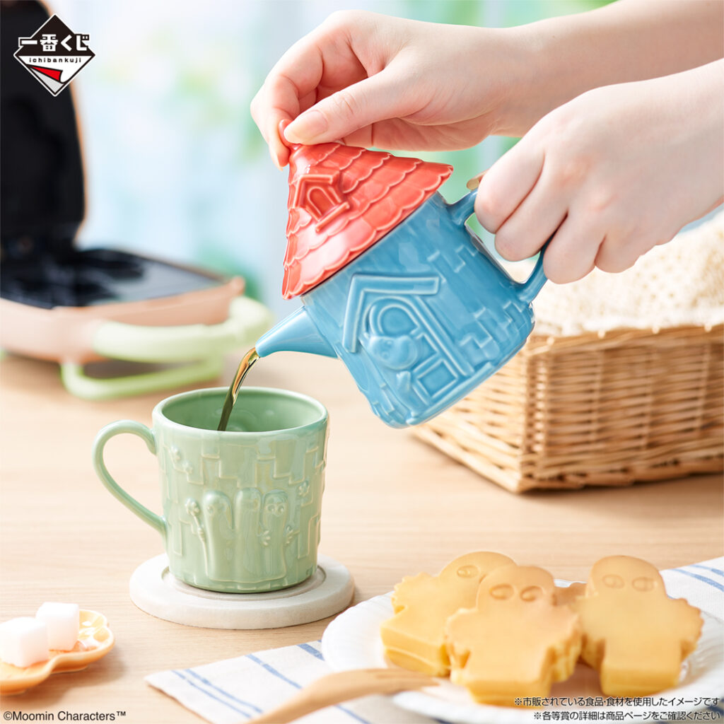 A賞のニョロニョロワッフルメーカー、B賞のムーミンやしきティーポットなど、ムーミンたちの暮らしをモチーフにしたグッズが多数登場します。