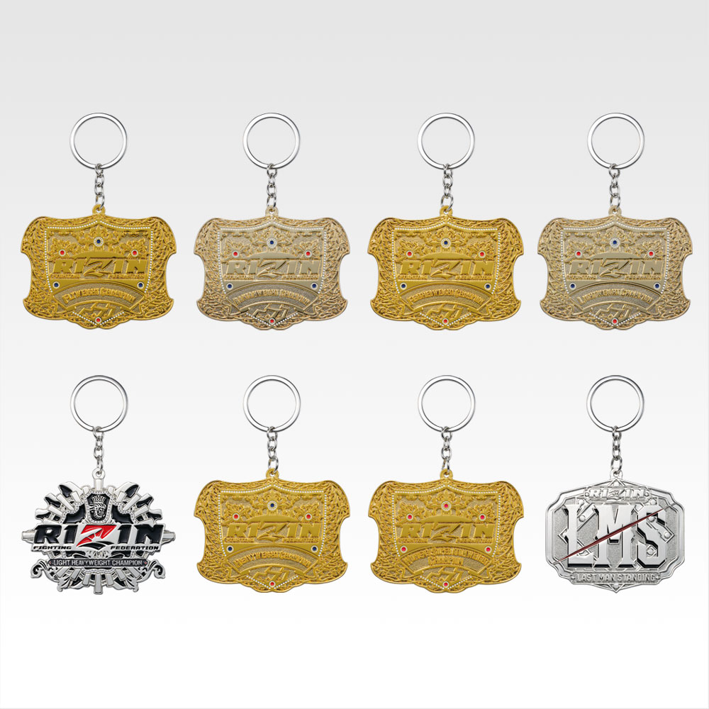 D賞は、RIZINのチャンピオンベルトをモチーフにしたメタルチャームです。