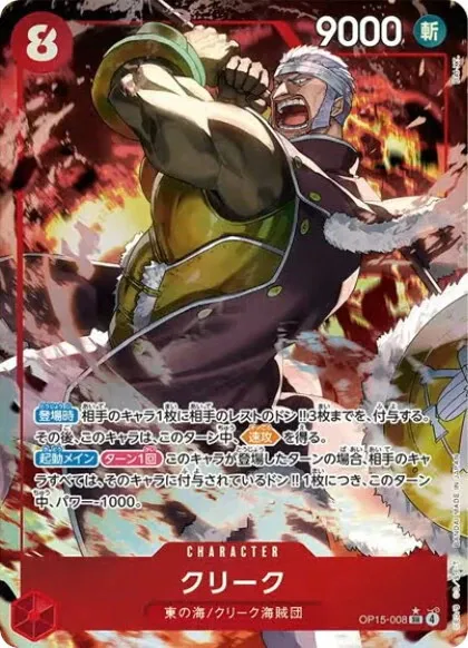 - クリーク SR-P【神の島の冒険】は、2026年2月28日(土)発売の「神の島の冒険」に収録されたワンピースカード