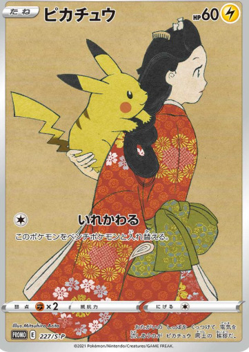 - ピカチュウ(見返り美人単品)は、2021年8月25日に日本郵便とポケモンカードゲームがコラボして発売したポケモン切手BOX~見返り美人・月に雁セット~に収録されたポケモンカード