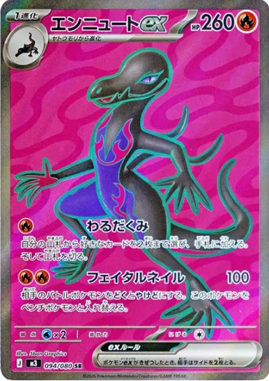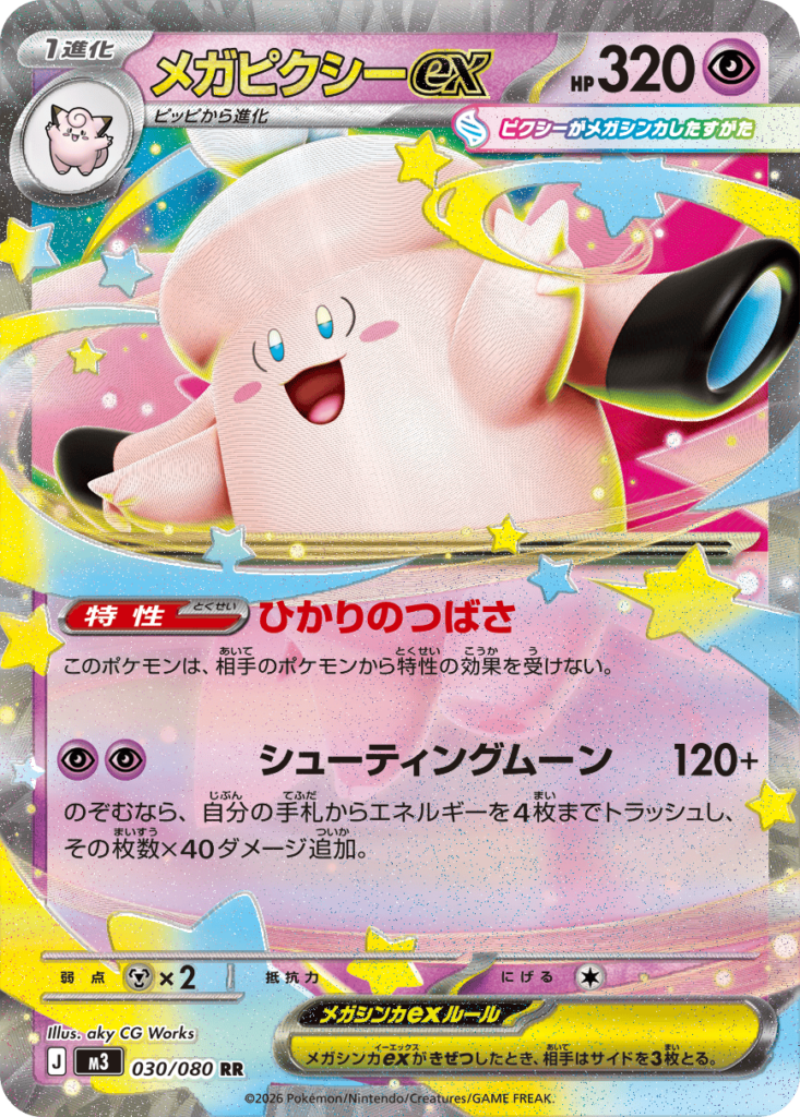 ポケモンZAで伝説枠として登場している「メガジガルデ」や人気の高いポケモン「ニャース」がexカードとして登場する点も注目です。