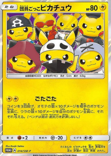 団員ごっこピカチュウとは、2016年12月17日に発売された「スペシャルBOX 団員ごっこピカチュウ」に収録されたポケモンカードです。