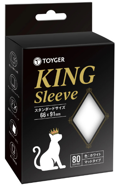 | KINGスリーブ スタンダードサイズ | 縦91mm×横66mm | 不明 | 80枚+4枚(予備) | 998円 |
