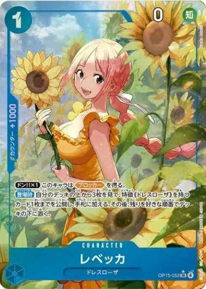 - レベッカ SR-P【神の島の冒険】は、2026年2月28日(土)発売の「神の島の冒険」に収録されたワンピースカード